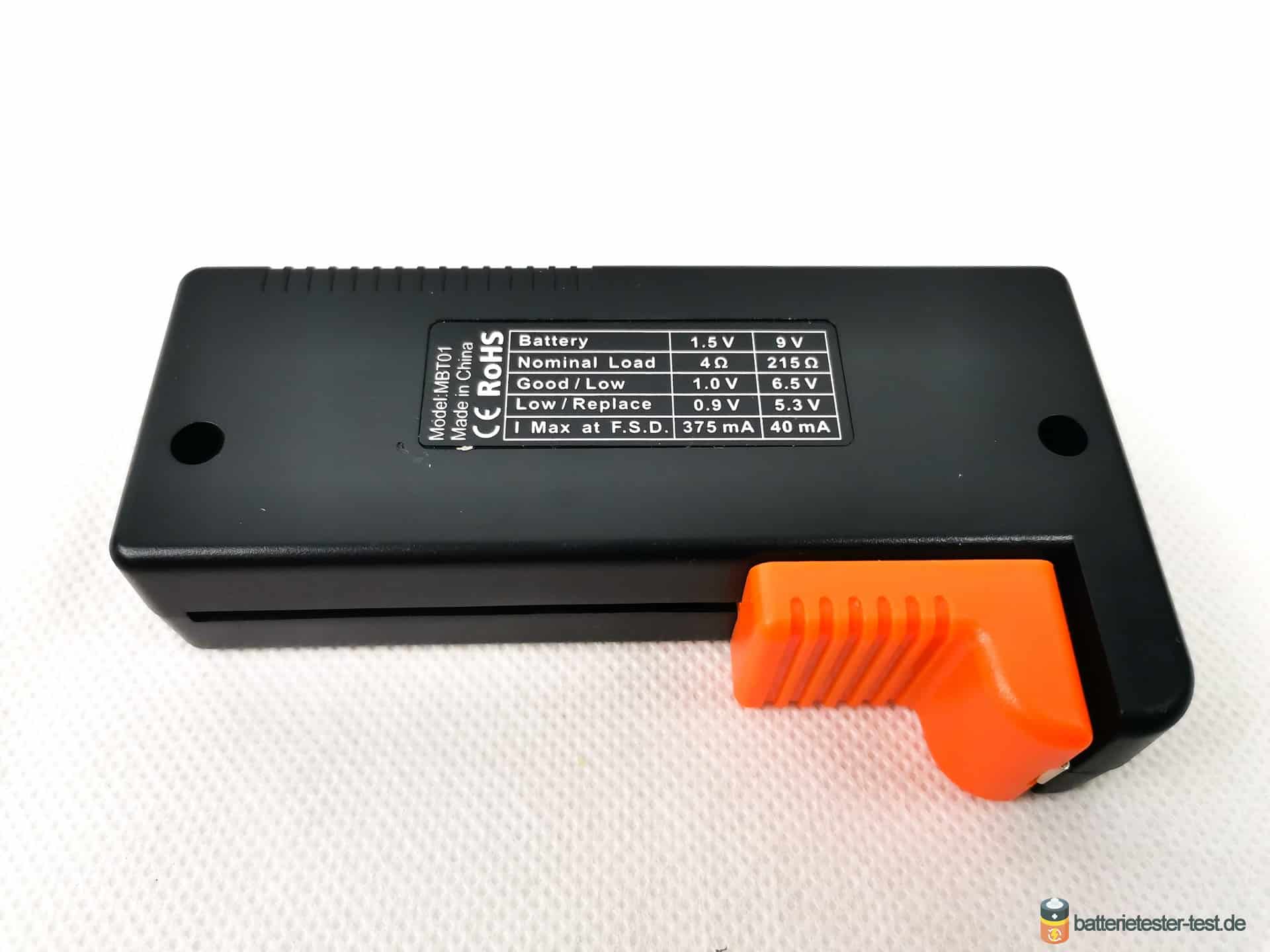 Weiterhin ist der Batterietester 11 cm lang, 4,1 cm bis 6,1 cm breit und 2,6 cm hoch. Damit gehört er zu einem der größeren Geräte. Dennoch ist er sehr handlich und kann sehr platzsparen verstaut sowie transportiert werden.