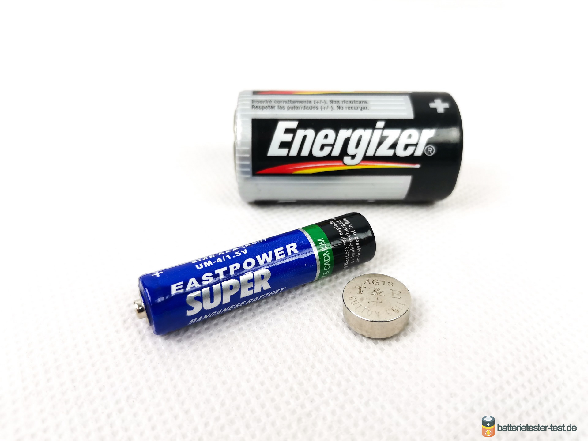 Zunächst möchte ich jedoch noch erklären, wie ich beim Test vorgegangen bin: Ich habe die Geräte alle im Internet bestellt und in einem geringen zeitlichen Abstand untersucht. Hierfür habe ich eine alte, nicht mehr funktionierende Knopfzelle, eine ältere, noch funktionierende C-Batterie und eine voll funktionsfähige AAA-Batterie verwendet.