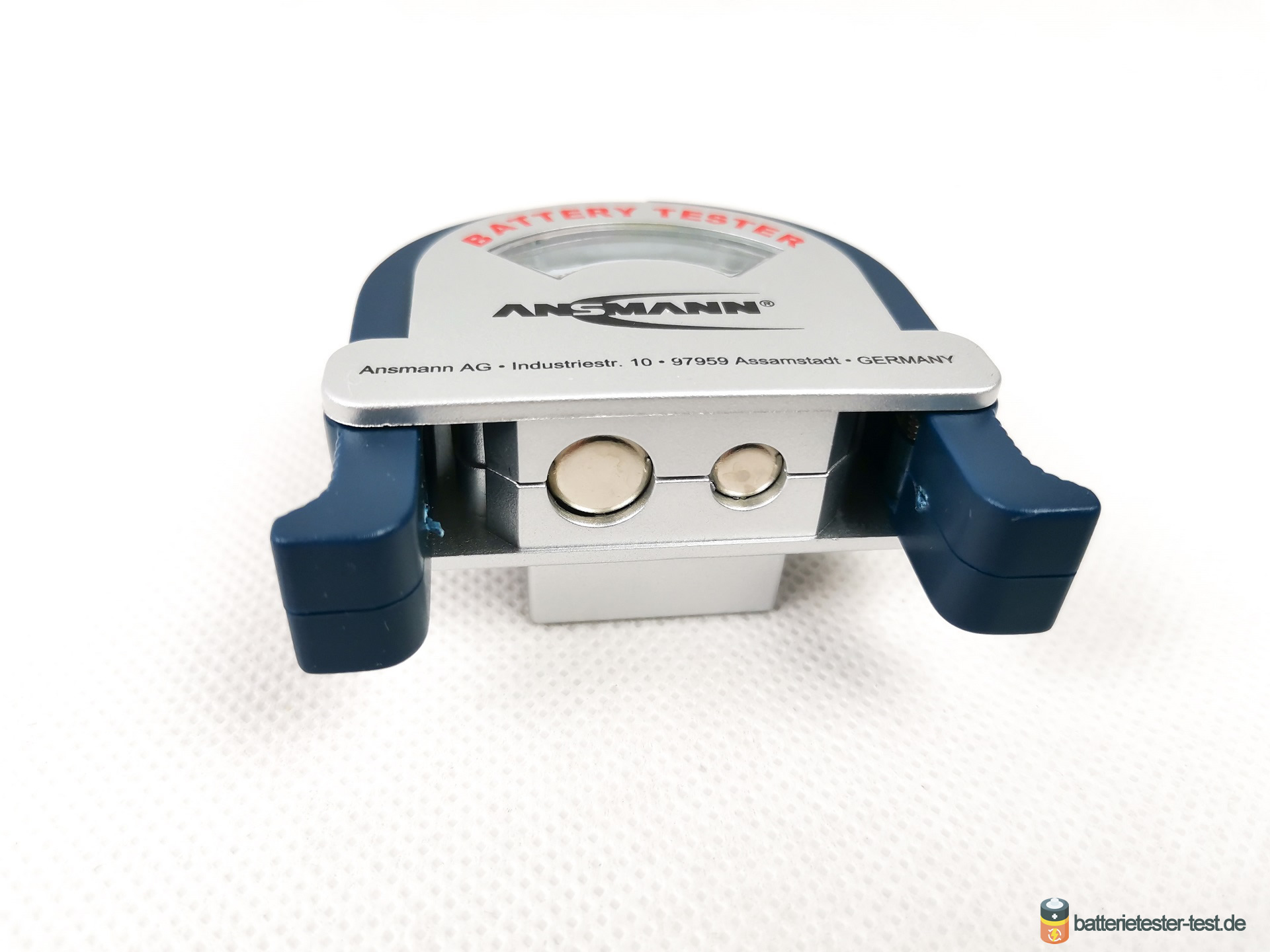 Die Handhabung des ANSMANN Batterietesters erscheint in der Theorie ganz einfach: Es werden einfach die beiden Kontakte zum Testen auseinandergezogen und an die Batterie / Knopfzelle gehalten.