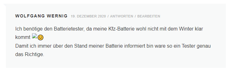 Mein Auto ist nicht das neueste und daher benötige ich den Baterietester. Besonders im Winter von Vorteil.