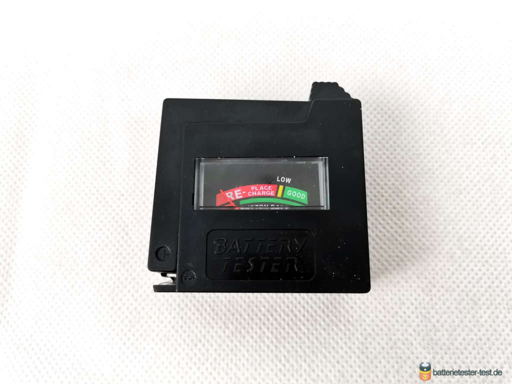 Die Anzeige des Batterietesters besteht aus einem größeren roten und einem kleineren grünen Bereich. Ein Zeiger stellt darauf den Zustand der Batterie dar. Befindet er sich im roten Bereich, muss die Batterie ausgetauscht / wieder aufgeladen werden. Zeigt er hingegen auf die grüne Fläche, so ist die Energiezelle noch voll funktionsfähig. Bei mir hat der Zeiger manchmal sehr stark geschwankt, weshalb ich ein paar Punkte in dieser Kategorie abziehen würde.